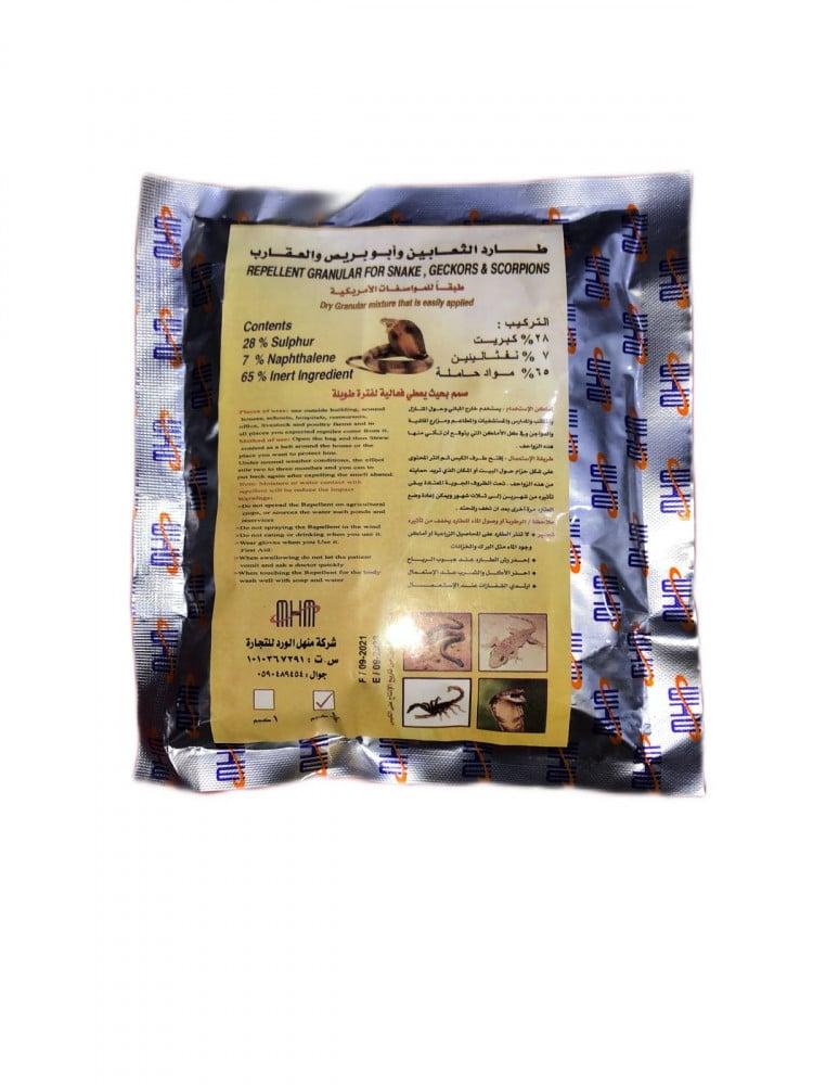يحتوي المنتج على تركيبة فريدة تخلق حاجزًا يحمي من الثعابين، ويبعد الأنواع الأكثر شيوعًا مثل أفعى الرباط، الأفعى الجرسية، أفعى النحاس، وغيرها.